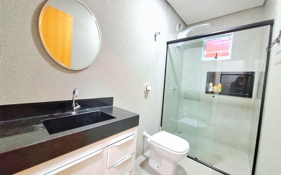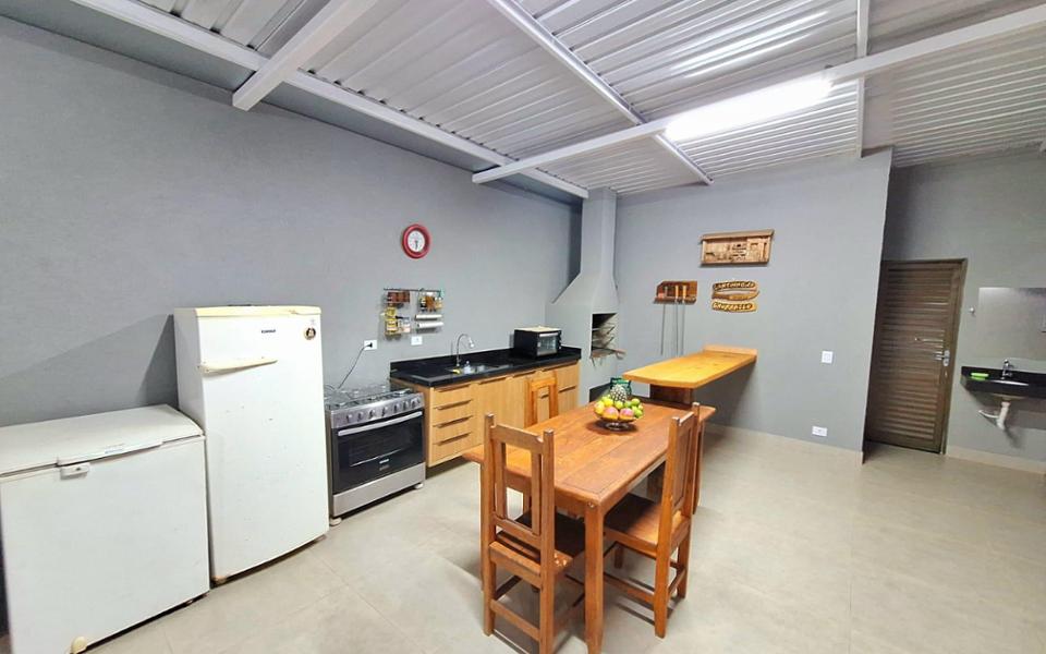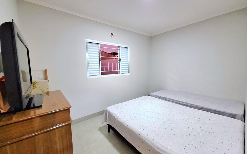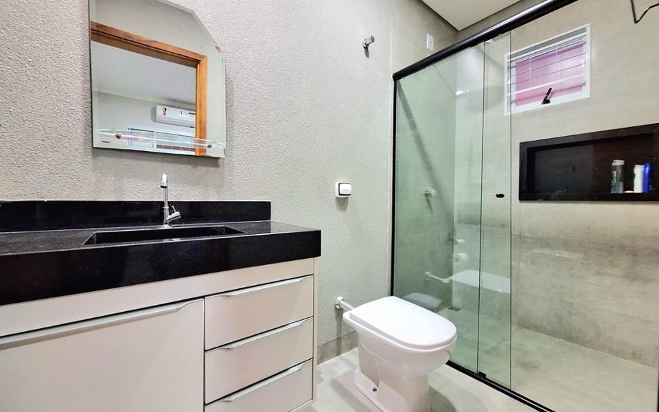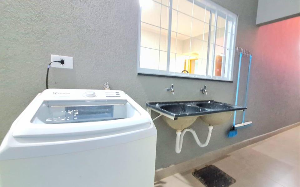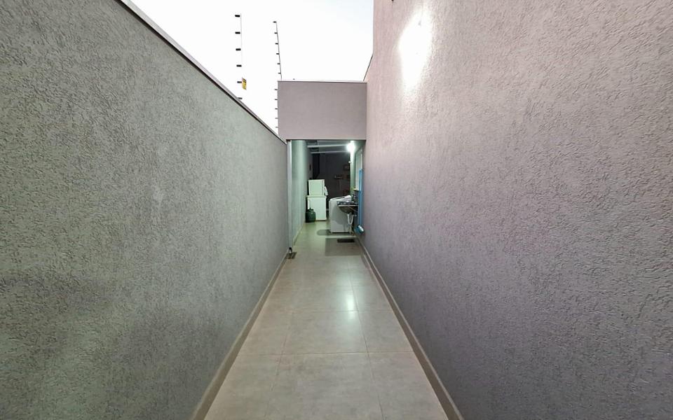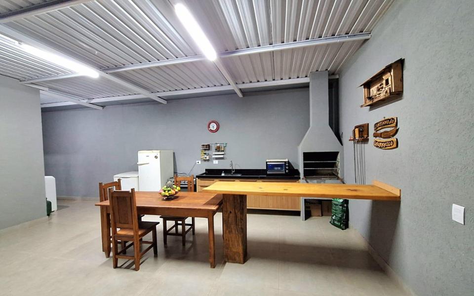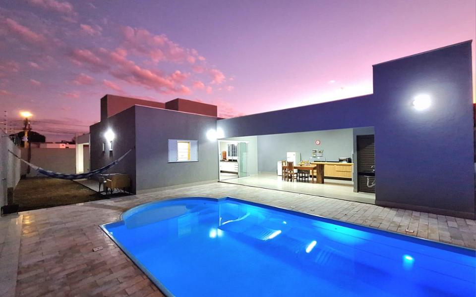 Excelente casa contendo sala de estar, 1 suíte, 1 quarto, banheiro social e cozinha. Planejados na cozinha, na suíte e nos banheiros. Na área externa, possui uma varanda lateral, mais 1 quarto, 1 banheiro completo, área de lazer com piscina, área gourmet com planejados, churrasqueira, balcão e pia. Garagem coberta para dois carros e abrigo para mais um carro.