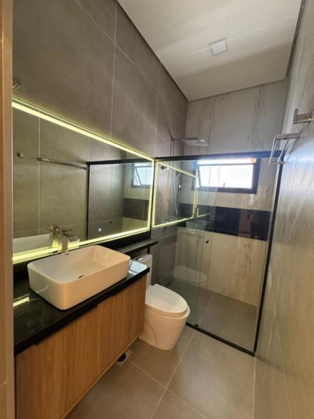 Dormitórios: 3 (1 suíte master com closet mais 2 demi-suítes). Ambientes: gourmet, lavabo, lavanderia, living magnífico com pé-direito de 4 metros que integra sala de TV, jantar e uma cozinha planejada, além de garagem para 2 veículos. Com um sistema de automação residencial completo, você gerencia toda a casa pela Alexa e/ou smartphone. Monitore as câmeras, comande a cerca elétrica, o portão de veículos e a fechadura eletrônica. Controle a iluminação (interna e externa), o som ambiente integrado (sala e gourmet), os aparelhos de ar-condicionado e as persianas elétricas dos dormitórios. Automação completa (casa inteligente), design com pé-direito duplo e cimento queimado, granito e armários planejados.