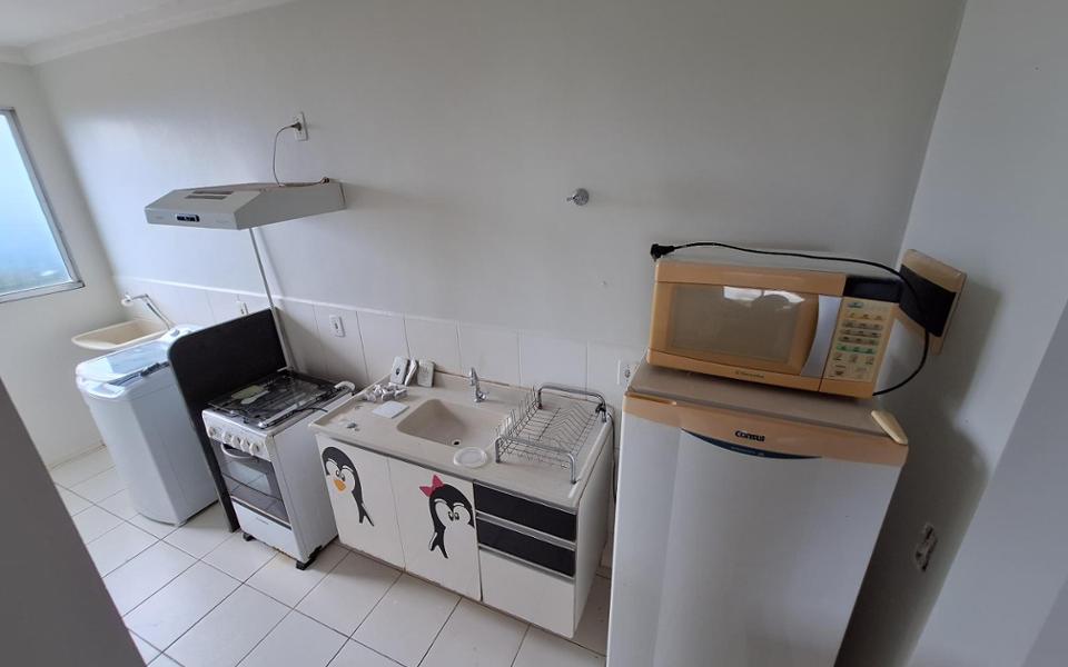 Apartamento com 2 quartos, 1 wc social, sala, cozinha, área de serviço e 1 vaga de garagem descoberta. Condomínio com piscina, churrasqueira, salão de festas, portaria e porteiro eletrônico. Ótimo apartamento no último andar. IPTU NÃO incluso. Obrigatória a contratação do seguro incêndio e vendaval.