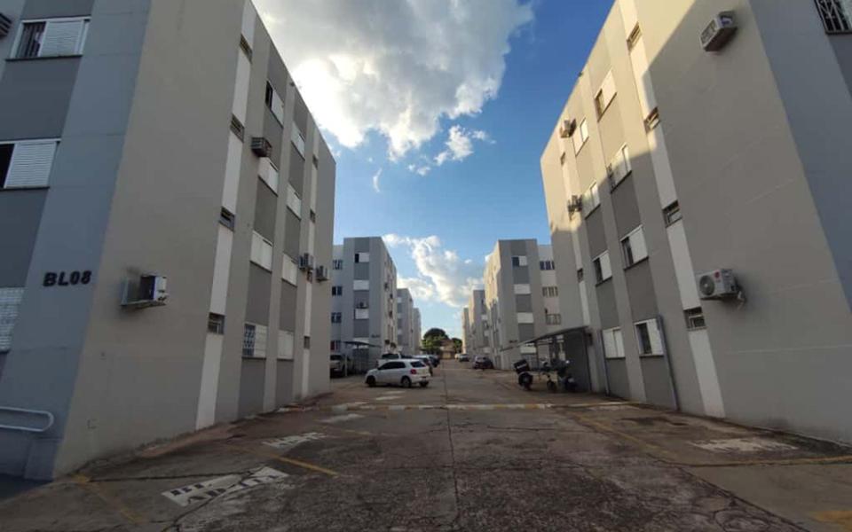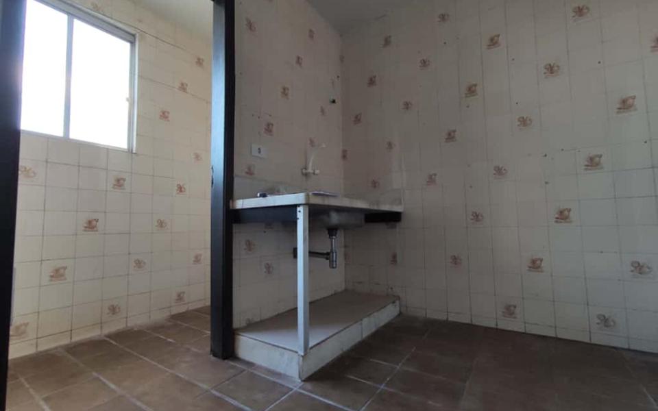 Apartamento no último andar, possui sala de estar, cozinha, área de serviço, 2 quartos, 1 banheiro social, 1 vaga de garagem.