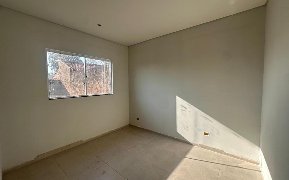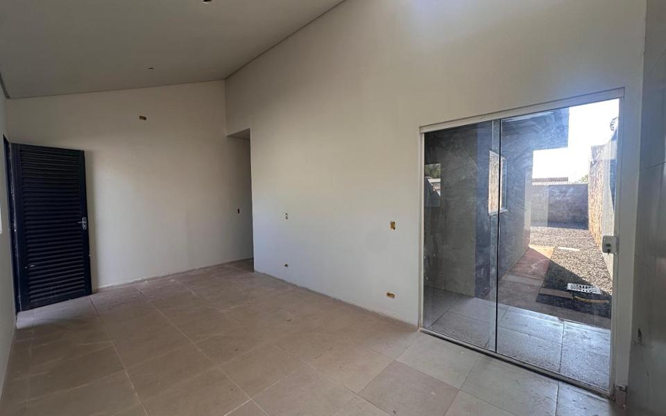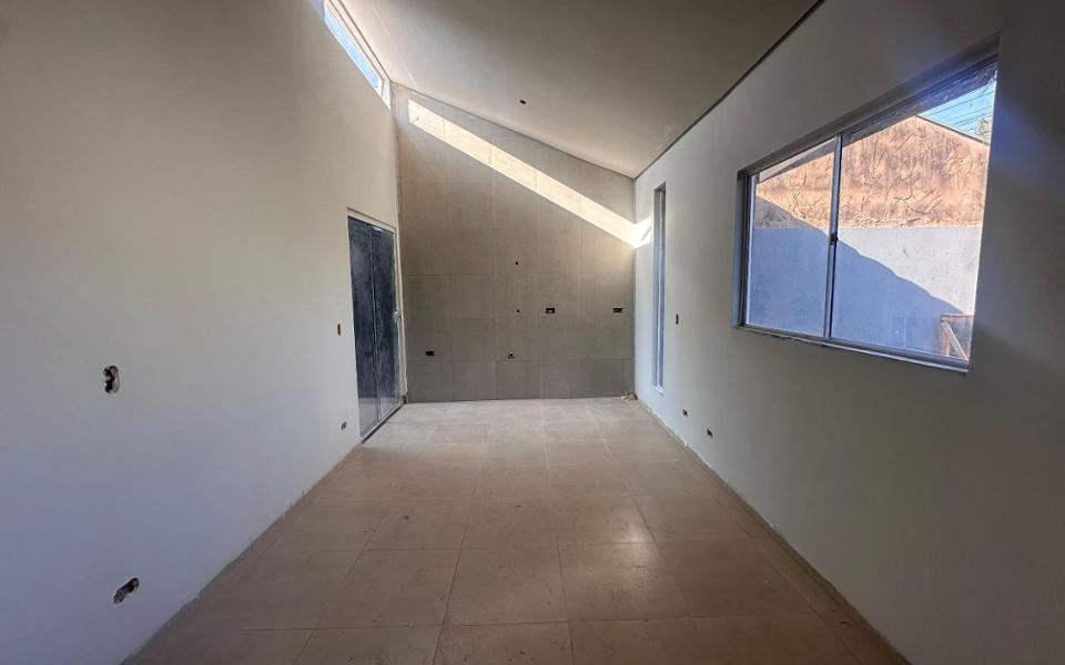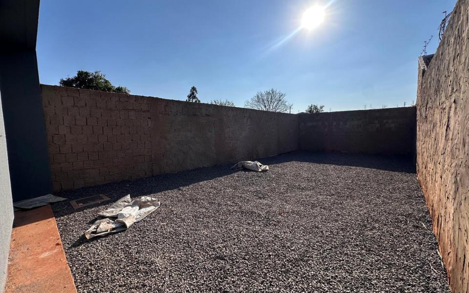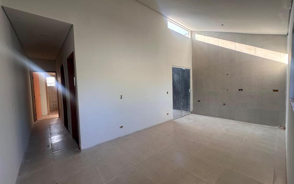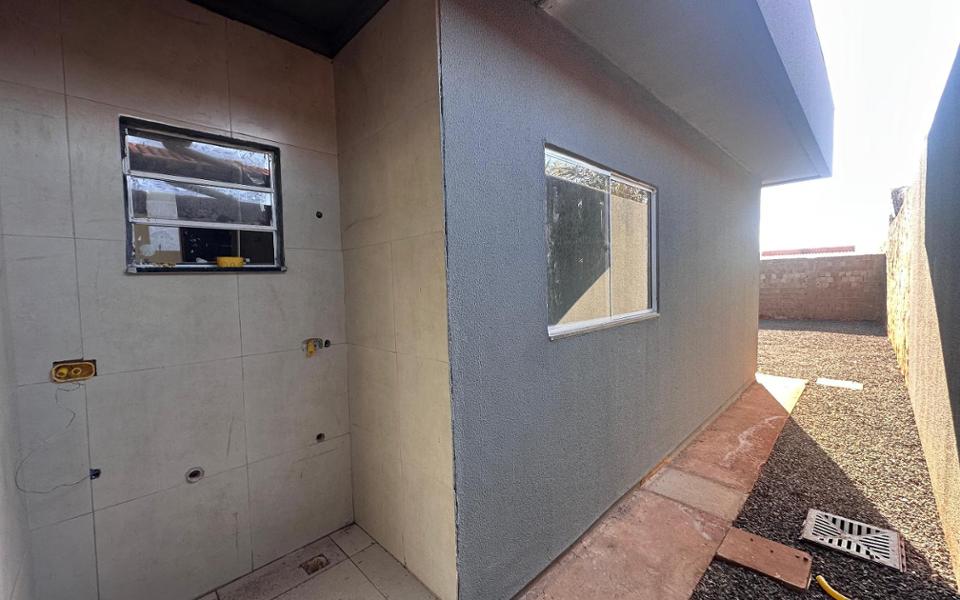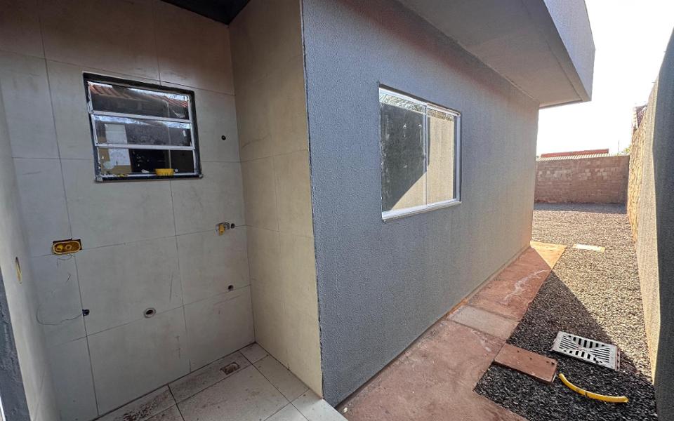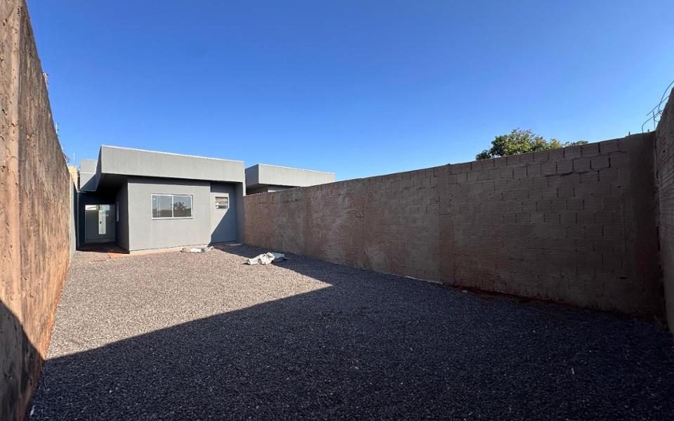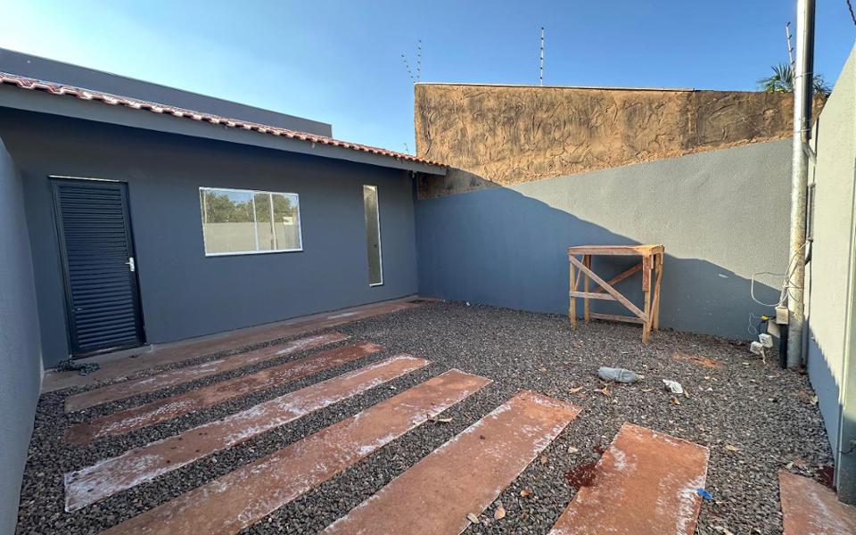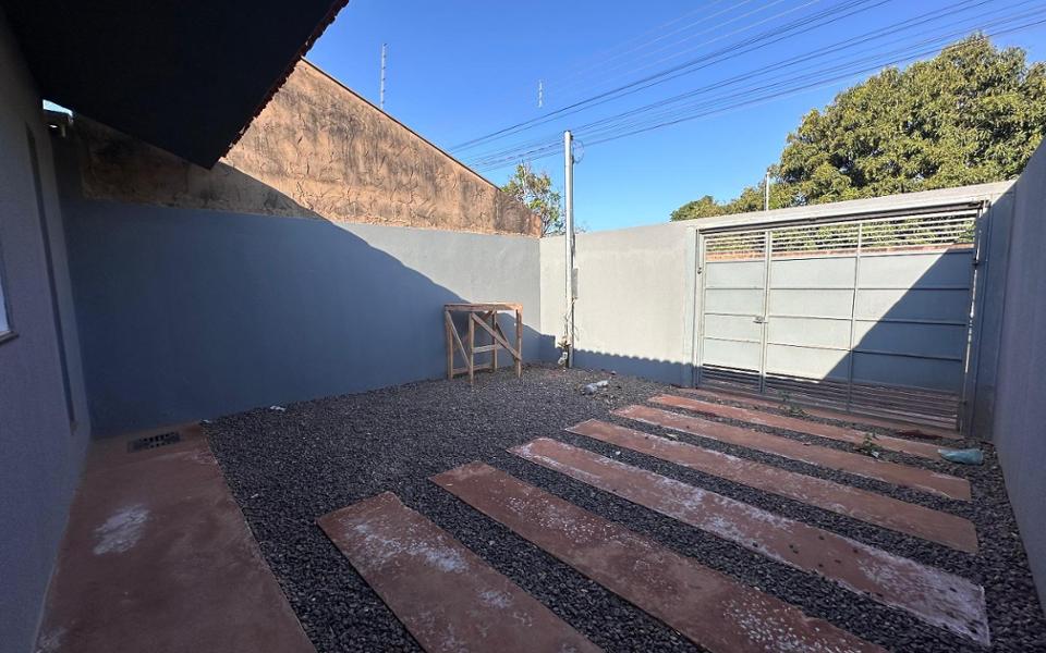 Casa com quintal grande, bem espaçoso nos fundos, possibilidade para ampliação, possui 2 vagas de garagem descobertas, sala de estar, cozinha, 1 WC social, 1 quarto, 1 suíte, área de serviço.