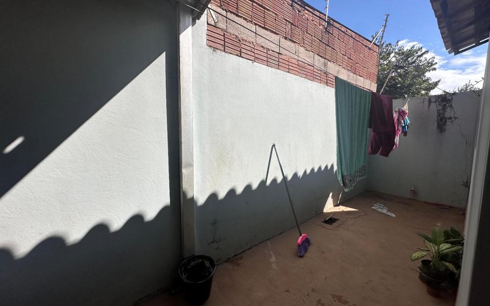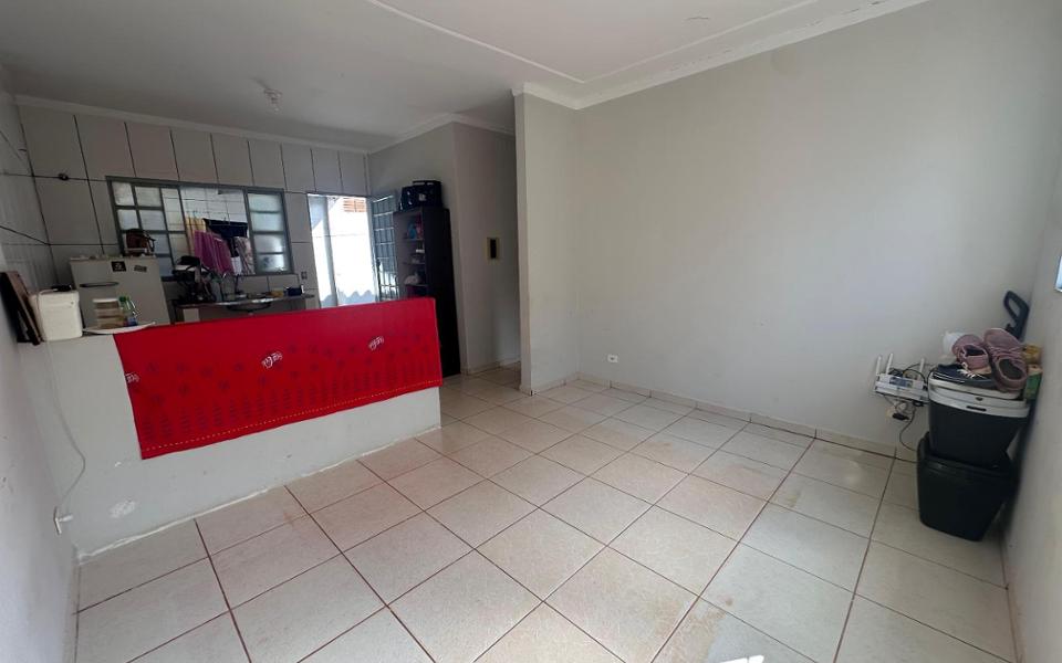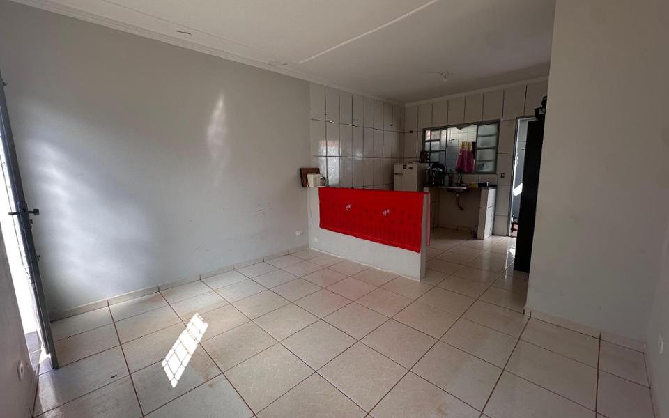 Imóvel com sala ampla, cozinha, área de serviço coberta, 2 quartos, 1 banheiro social, 2 vagas de garagem descobertas e jardim.