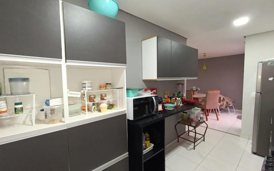 Condomínio fechado. Casa com sala ampla, 1 quarto e 1 apto. 1 banheiro social, cozinha com planejados, área de serviço integrada com a cozinha. No condomínio possui 1 piscina, área gourmet e salão de festas, 2 playgrounds. Aceita propostas, financiamento. CRECI: 7883-J