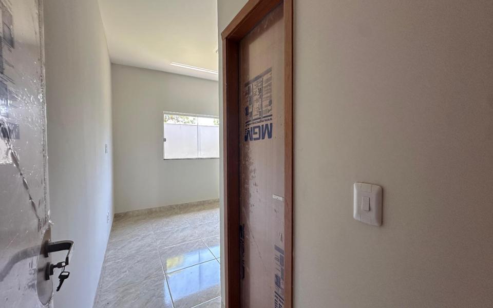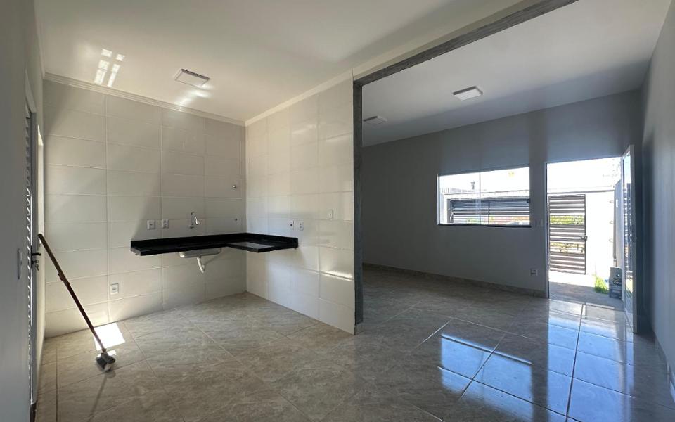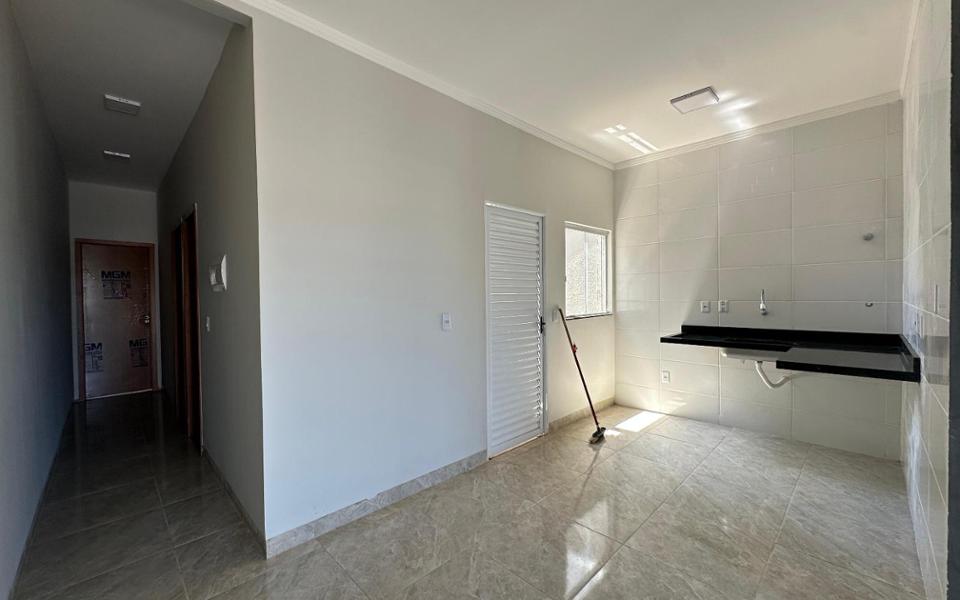 Casa nova com 1 quartos, 1 suíte, 1 wc social, sala de estar ampla, cozinha com pia bancada em granito, área de serviço coberta, 2 vagas de garagem descobertas, portão de elevação e portão social, em região de expansão. Aceita financiamento. CRECI: 7883-J