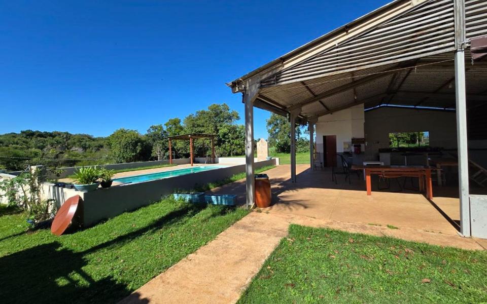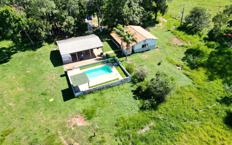 hácara no Centro Oeste, dentro da cidade, área total de 8.756,24 m², área construída de 350,00 m², possui casa de forro, com sala de estar, cozinha com armários, um quarto, um apartamento, varanda, área de serviço, galpão gourmet servindo de salão de festas, com churrasqueira, pia, banheiro, piscina, poço artesiano, quatro tanques de peixe, pomar, canil, curral, excelente chácara dentro da cidade.