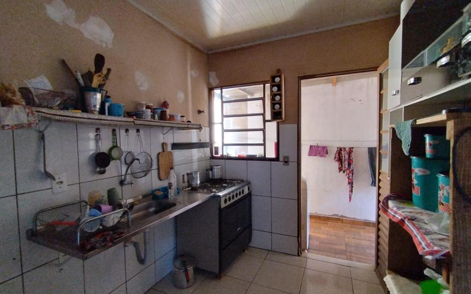 3 quartos, 1 banheiro, sala, cozinha e área de serviço.