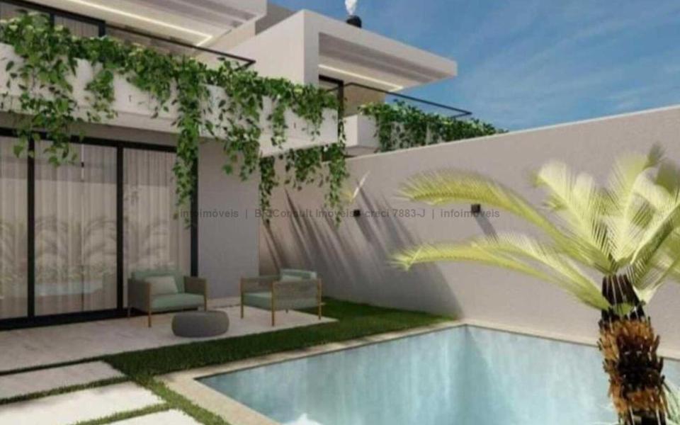 piscina, 2 vagas na garagem cobertas, porta de elevação e portão social.