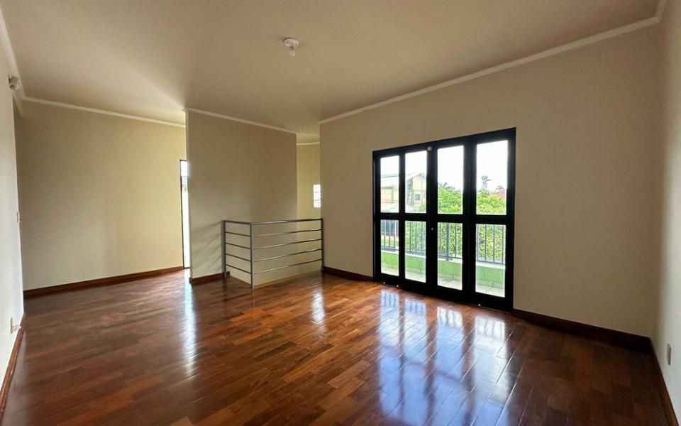 Piso superior possui escada com piso em granito, sala íntima com armário e sacada, 1 suíte com sacada em "L" ar condicionado e banheira com hidromassagem, 2 quartos amplos, sendo um com ar condicionado, 1 wc social, 1 terraço amplo, ótimo para lazer.