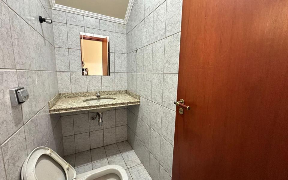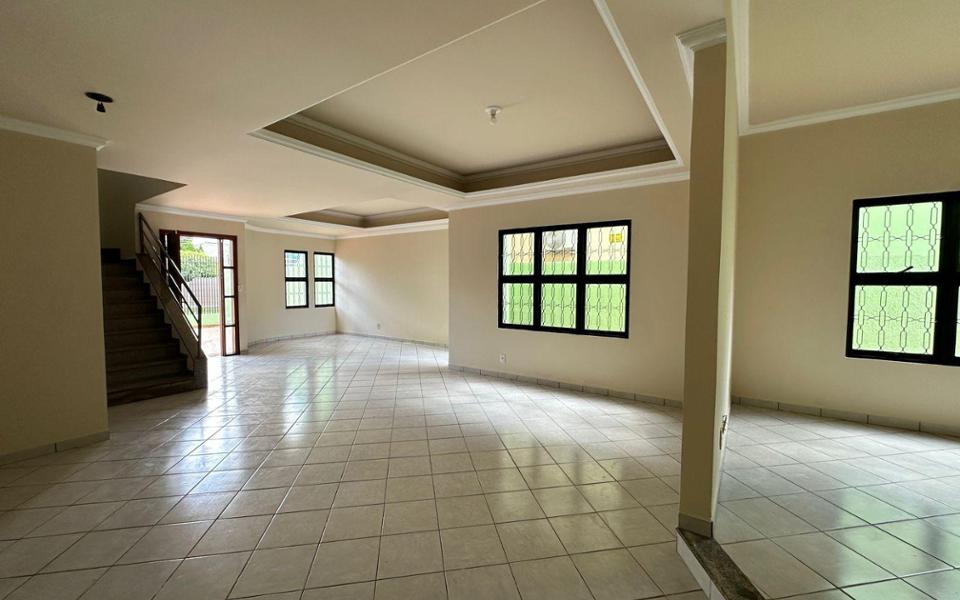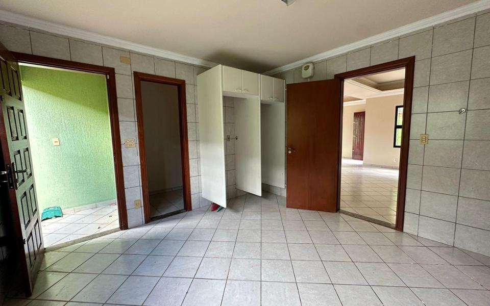 Piso inferior possui sala de estar ampla, sala de jantar, sala de tv, 1 lavabo, cozinha com armários planejados, 1 despensa.