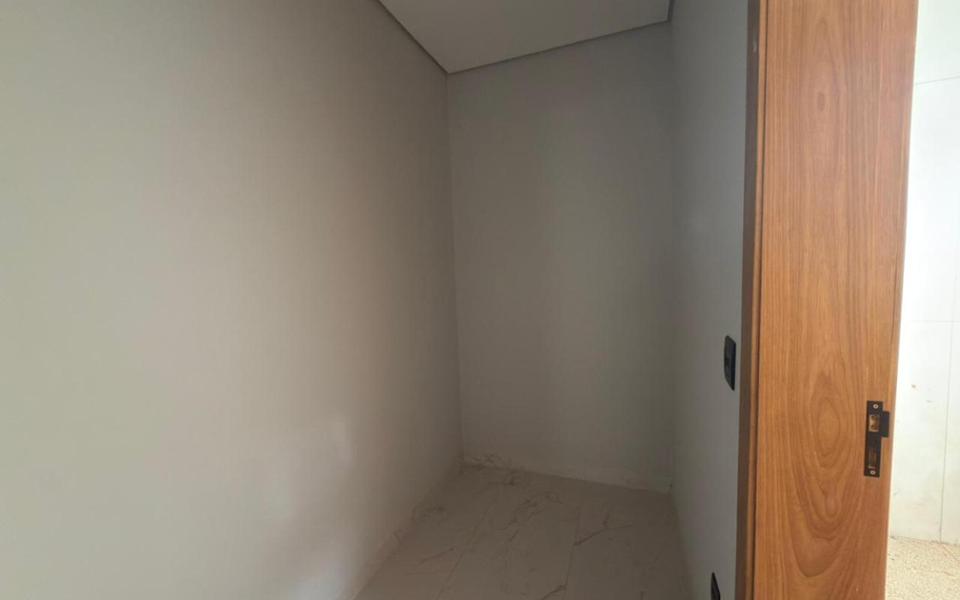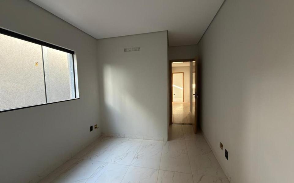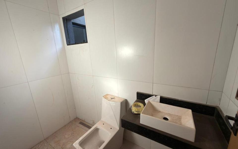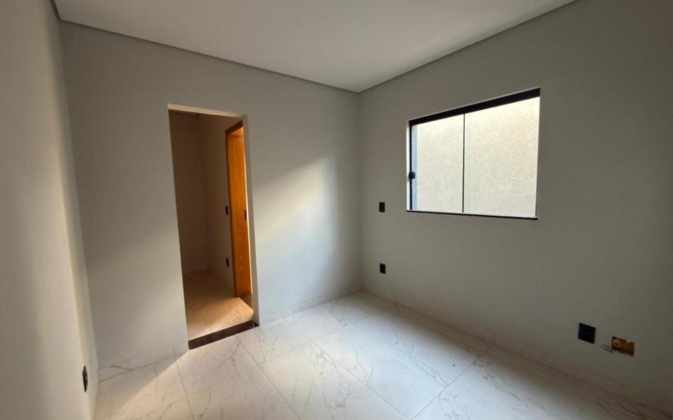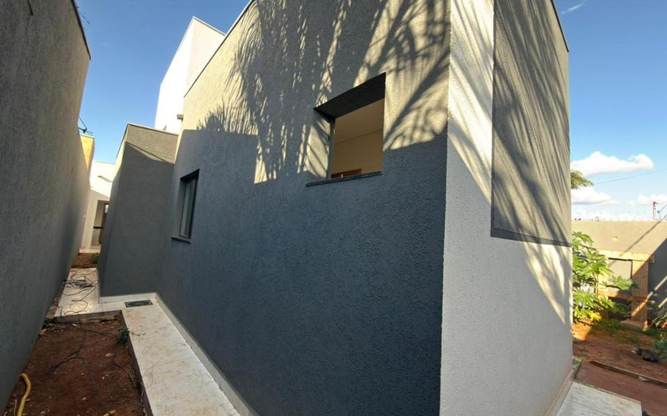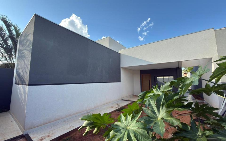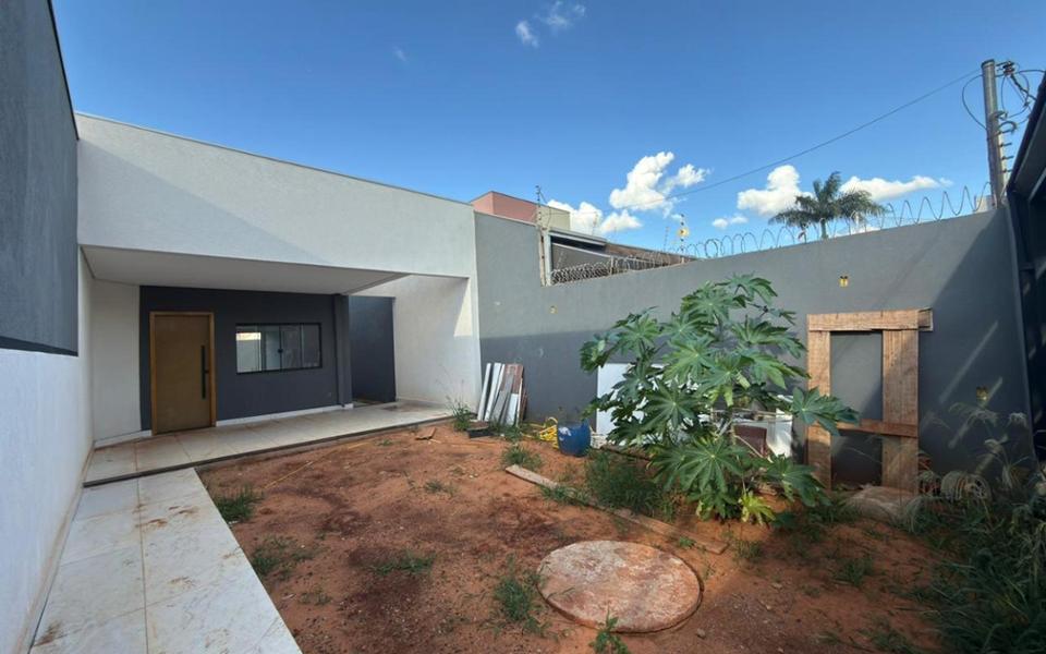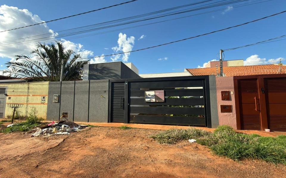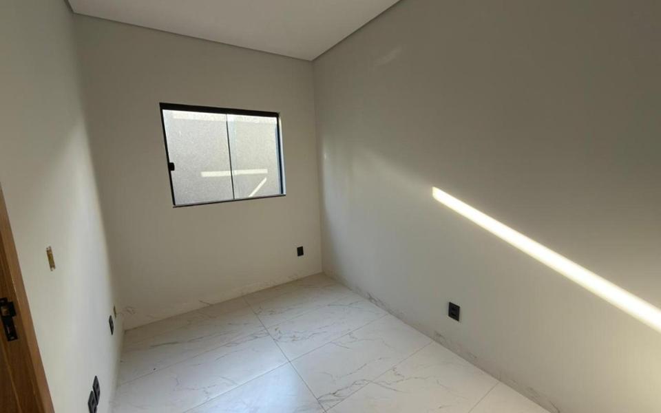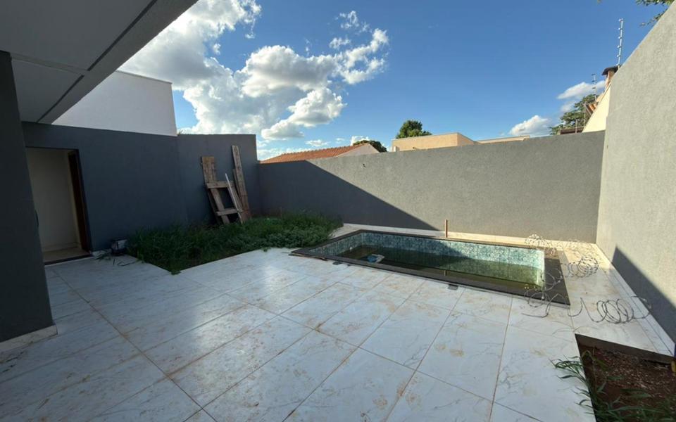 Casa nova com 3 quartos, sendo uma suíte com closet, sala de estar ampla, cozinha com bancada em "L" e ilha de granito, churrasqueira, piscina, área de serviço coberta e WC de serviço.