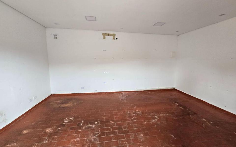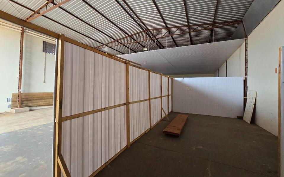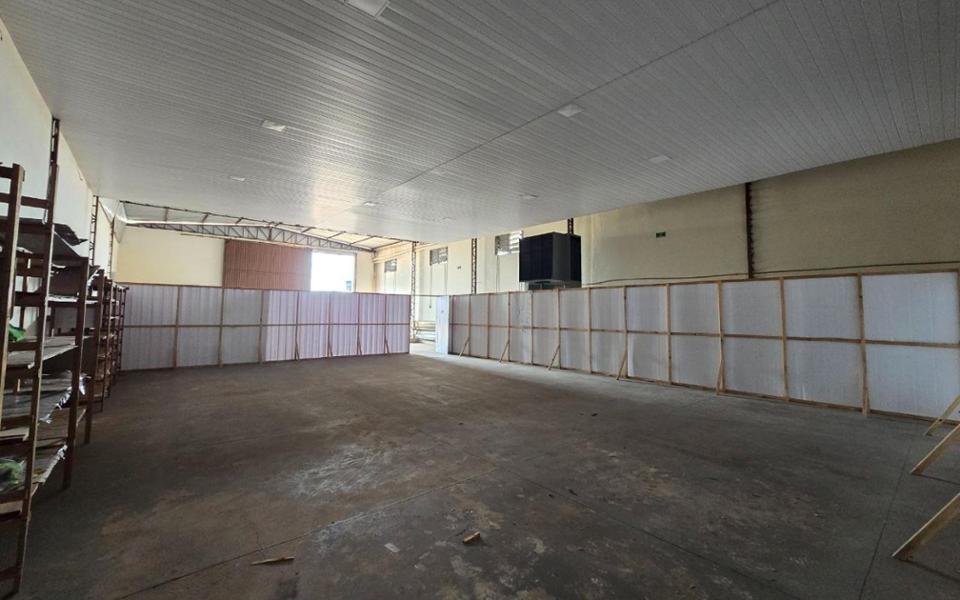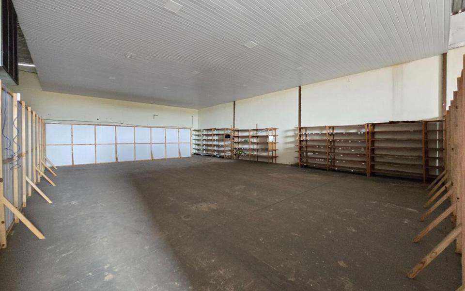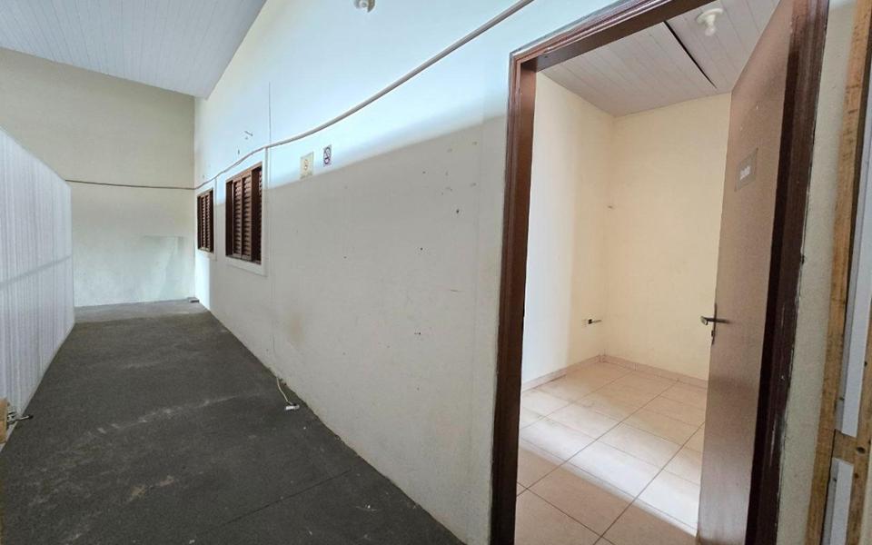 Salão/galpão possui o espaço do salão e uma construção no fundo com: copa, 1 banheiro e 2 salas.