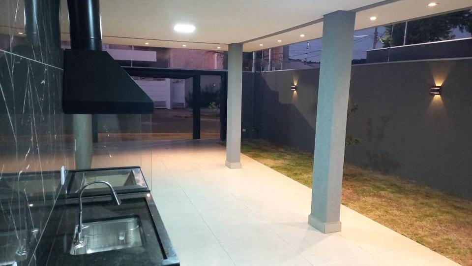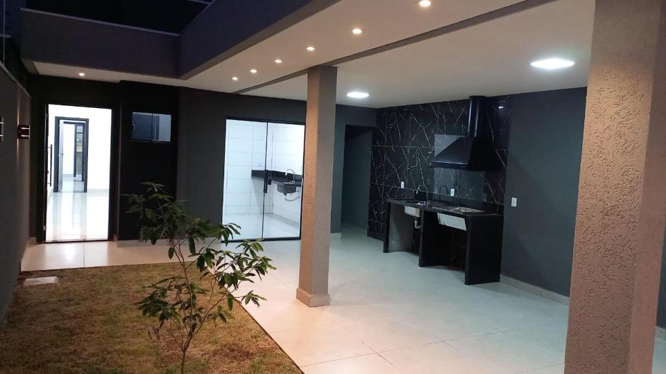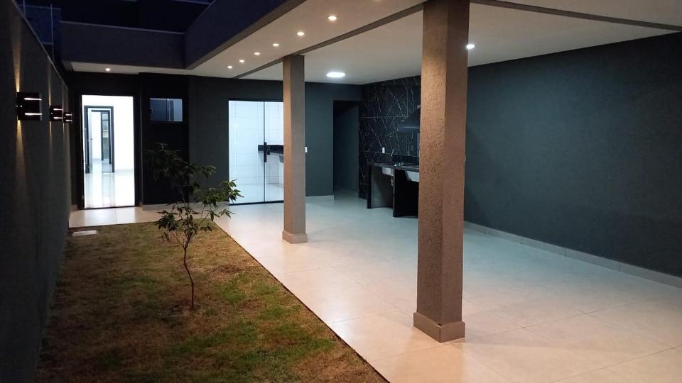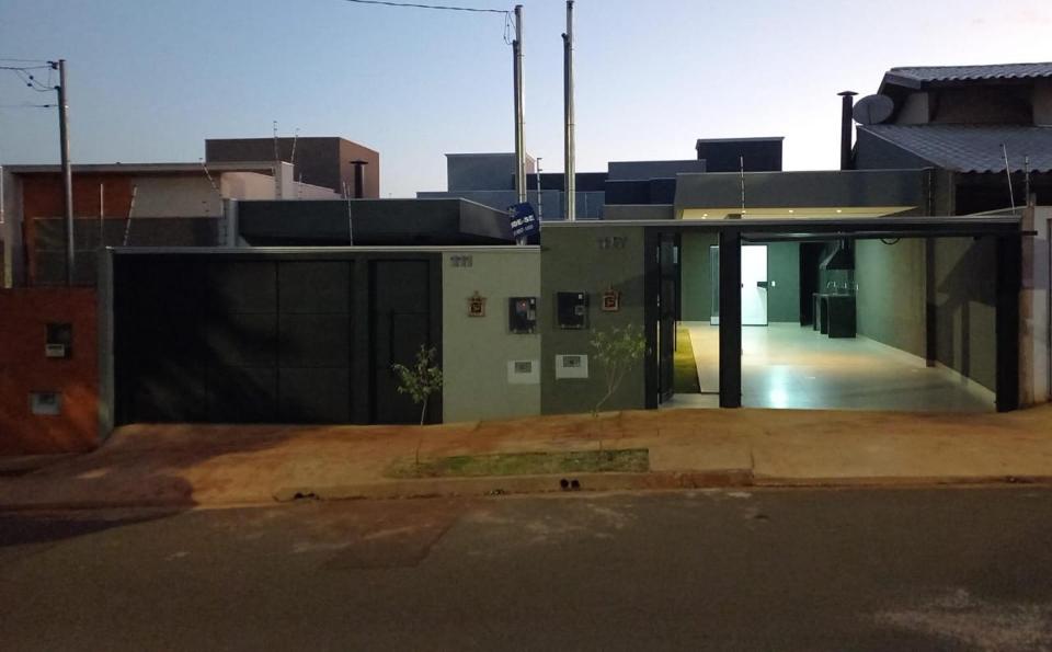 Casa com 1 suíte master, 2 quartos, sala de estar ampla, cozinha, espaço gourmet, 2 vagas de garagem, 1 wc social, lavanderia. Muito bem construída com drenagem de águas pluviais, pé direito duplo na sala de estar, porcelanato na área externa acetinado, porcelanato polido na área interna, churrasqueira com grill, iluminação toda em led, cerca elétrica.