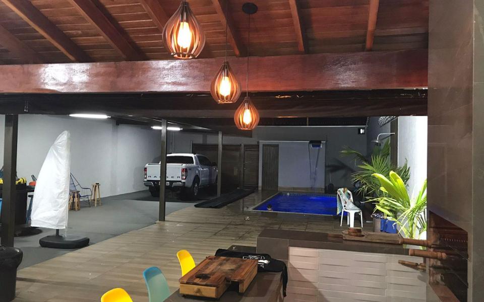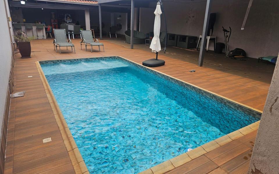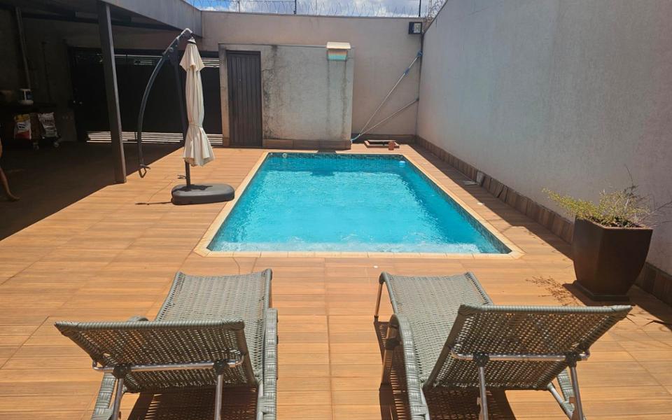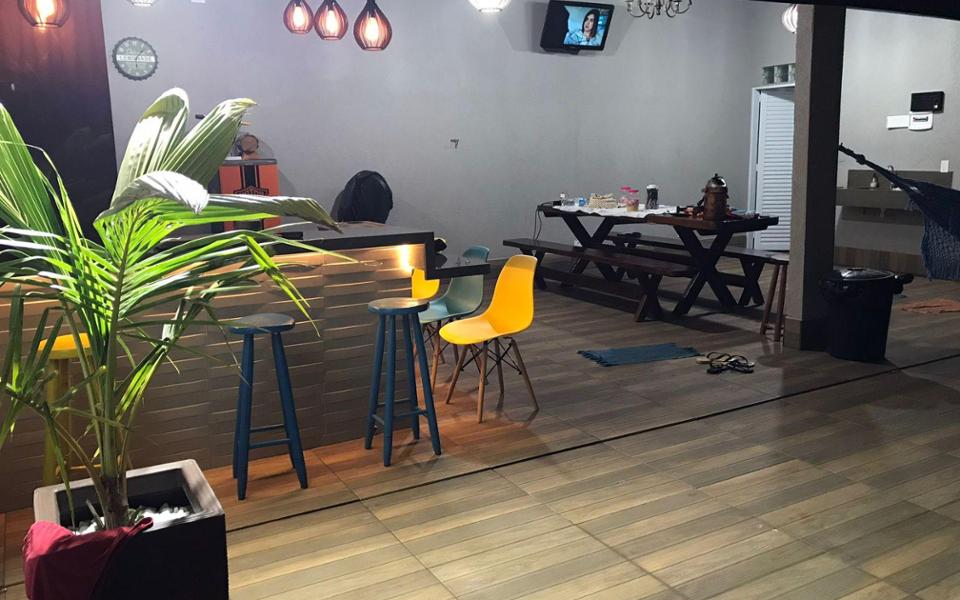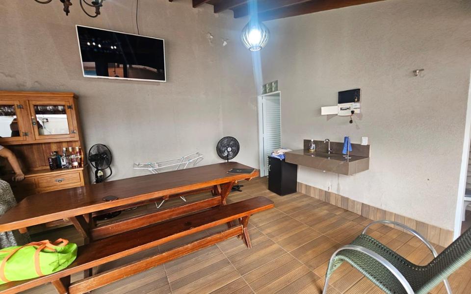 Casa para festas, área de lazer com churrasqueira, área de serviço, varanda, 4 vagas de garagem, 2 banheiros sociais, cerca elétrica, cozinha, asfalto, rede elétrica, água, esgoto, muro, piscina com cascata, aceita permuta em veículo. Terreno 10 x 20 m. Diferenciais do imóvel: porteira fechada com cadeiras, mesas, itens de piscina e utensílios básicos, área gourmet com churrasqueira e bancada em porcelanato, banheiros masculino e feminino, piscina com cascata aquecida, espaço coberto e amplo para confraternizações, piso em toda a área externa, muro alto.