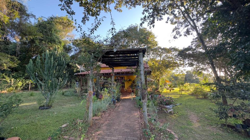 Chácara belíssima, com várias árvores frutíferas, casa sede com 1 suíte, 2 quartos, 1 wc social, sala, cozinha, área de serviço, varanda incrível, piscina com banheiros sociais na área externa, pergolado, área livre para plantio.