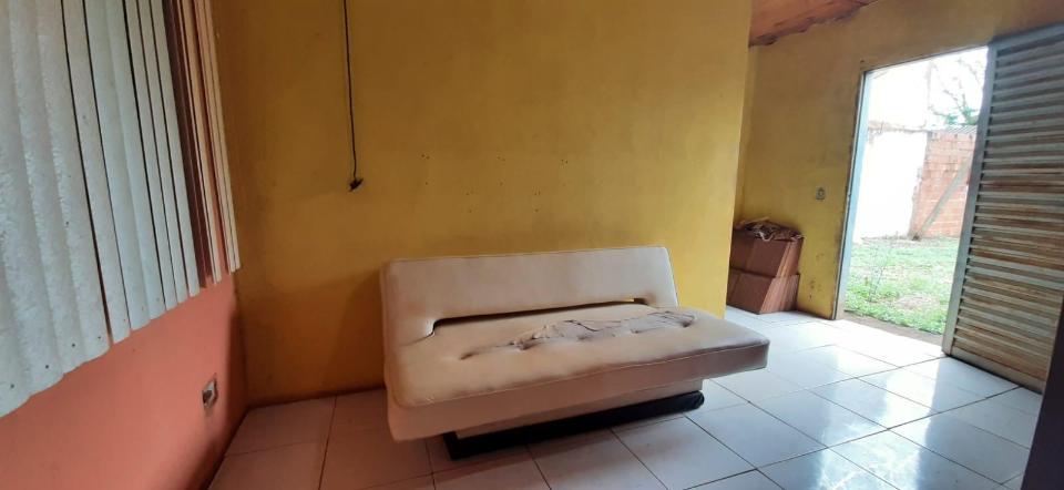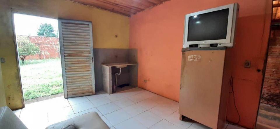 Imóvel contendo sala de estar, cozinha, 1 quarto, banheiro social, área de serviço, varanda em "L", garagem coberta (4 carros) e amplo quintal.