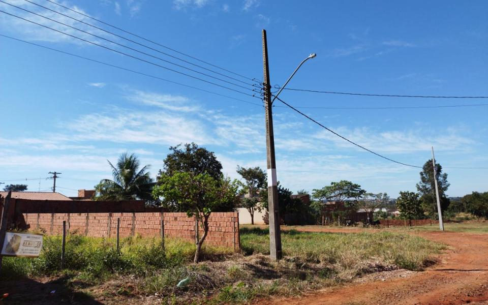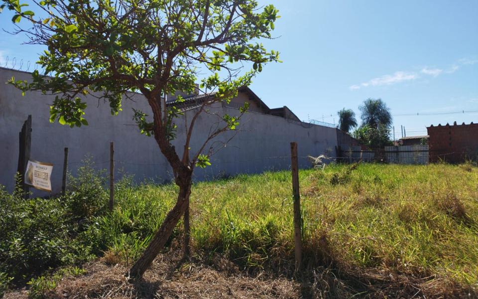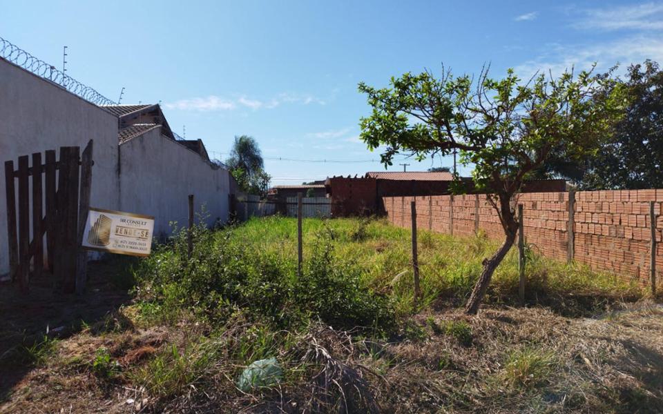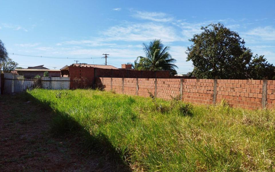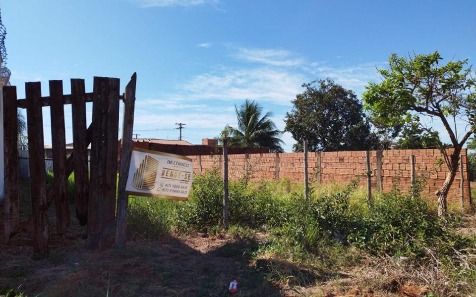 Terreno sub esquina, medindo 250m², 10m de frente por 25m da frente aos fundos, possui muro nas laterais. Bem localizado, há 100 metros do asfalto, região de expansão.